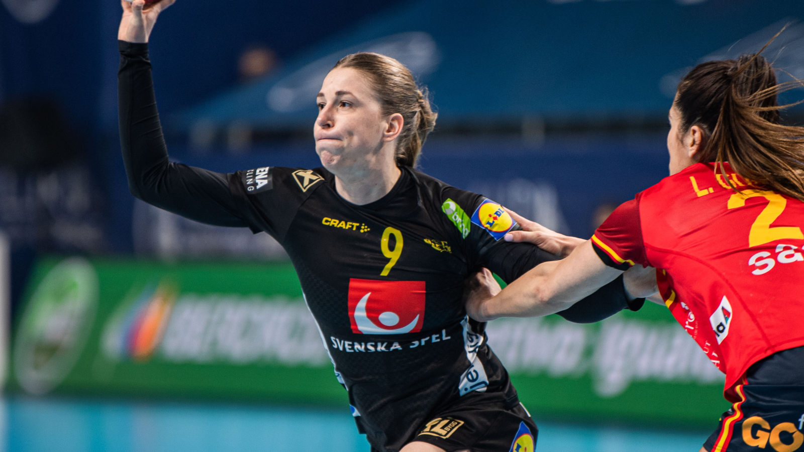 Framför allt var det ett ramstarkt försvarsspel som lade grunden till Sveriges ledning. Spanien körde fast i flera anfall och förlitade sig kraftigt på Nerea Pena. I den 40:e minuten ledde Blågult med 20–16.