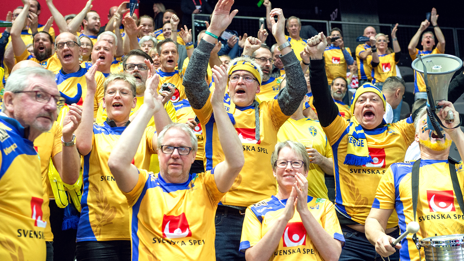 Bilden: Det var ett fint svenskt stöd på läktaren i Spaladium Arena i går. I publiken fanns bland annat de tidigare europamästarna Jerry Hallbäck och Magnus Lindén samt Oscar Carlén och Kim Andersson.